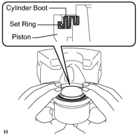 NOTE: Securely install the cylinder boot into the groove of the disc brake cylinder.