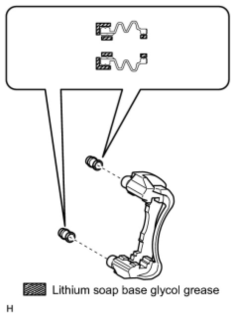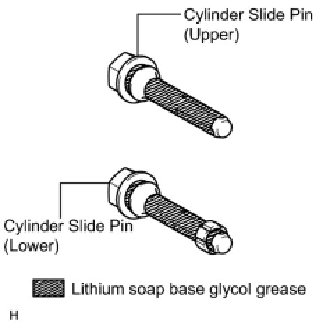 (a) Apply lithium soap base glycol grease to the sliding part and the seal surface of the 2 front disc brake cylinder slide pins.