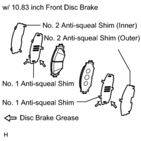 (1) Apply disc brake grease to both sides of each No. 1 shim.