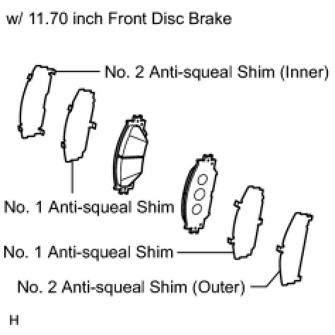 (2) Install the No. 1 and No. 2 shims to the pads.