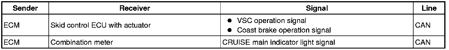 - The ECM receives signals such as ON-OFF, -SET (SET / COAST), +RES (RESUME / ACCEL), and CANCEL from the cruise control switch.