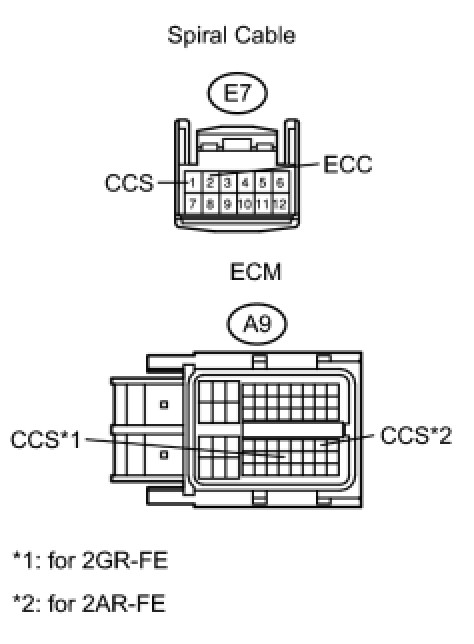 This circuit sends signals to the ECM depending on the cruise control switch condition. The battery supplies positive (+) battery voltage to the cruise control switch. Then terminal CCS of the ECM receives the voltage according to the switch condition.