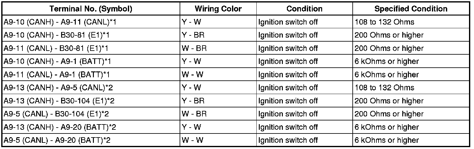 HINT: Operating the ignition switch, any other switches or the doors triggers related ECU and sensor communication with the CAN, which causes resistance variation.
