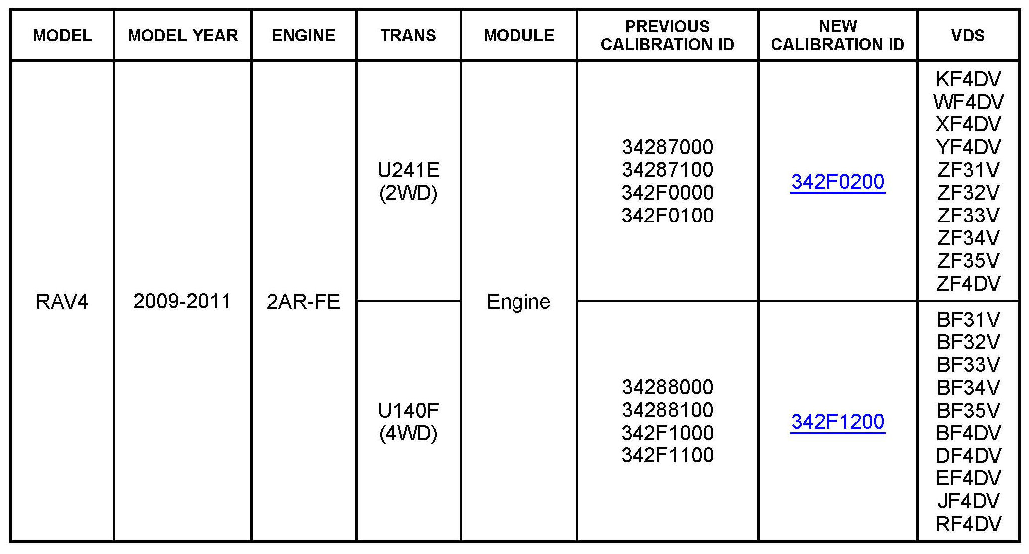 Some 2009 - 2011 model year RAV4 vehicles equipped with the 2AR-FE engine and 4 speed automatic transaxle (2WD & 4WD) may exhibit a rattle noise from the transaxle assembly between 25 - 35 MPH. The Engine Control Module/ECM (SAE term: Powertrain Control Module/PCM) logic has been revised to address this condition.