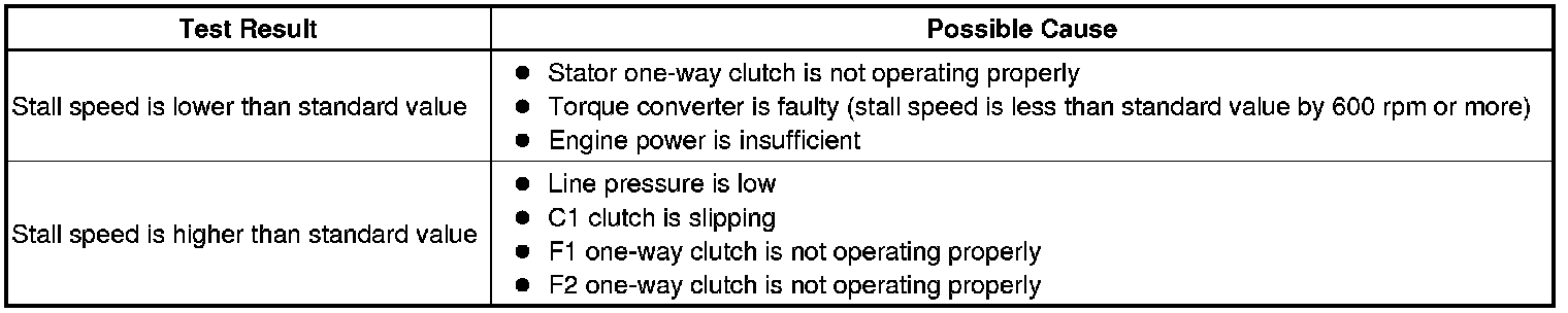 NOTE: Perform the test with the ATF at the normal operating ATF temperature of 50 to 80°C (122 to 176°F).