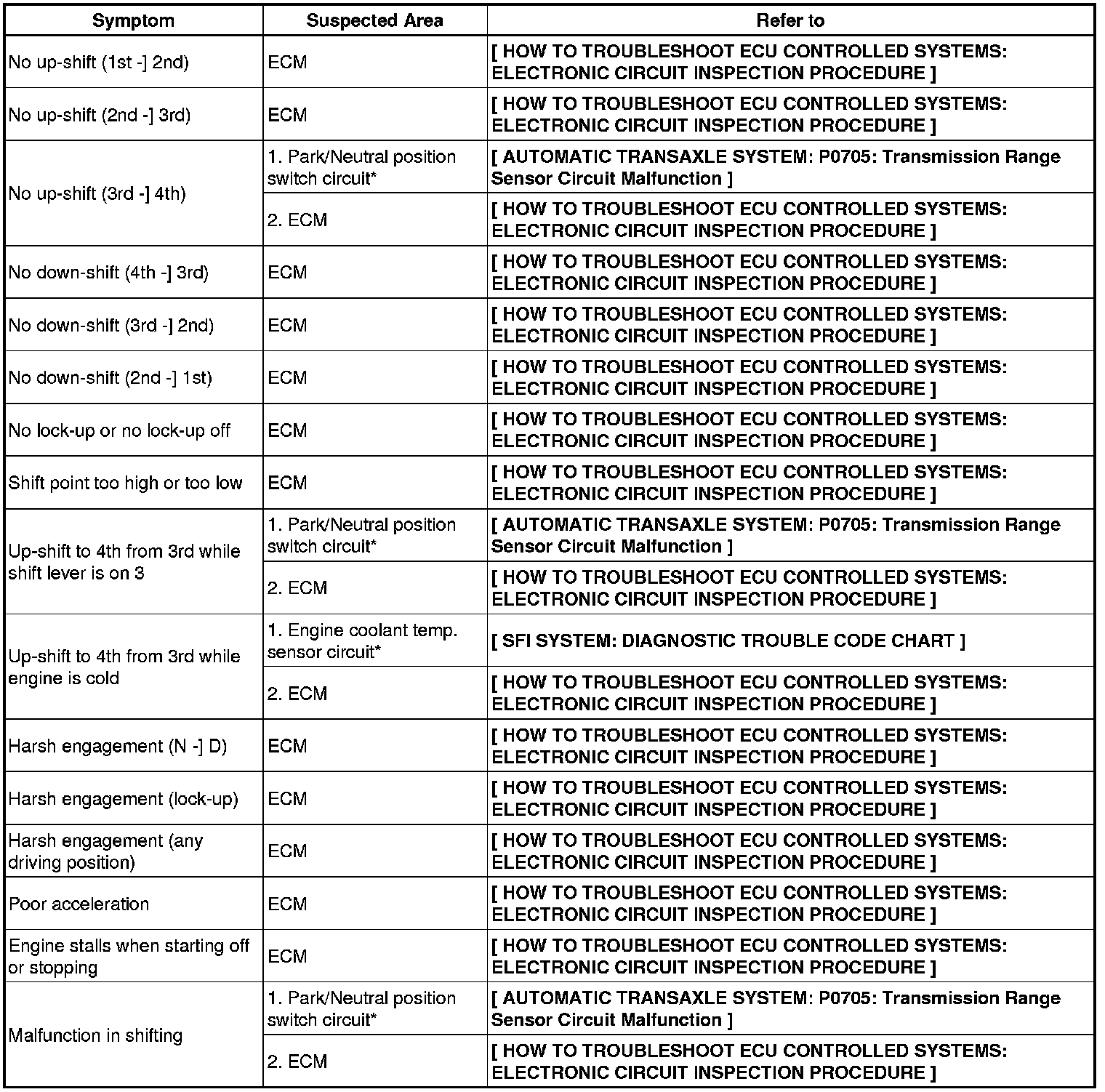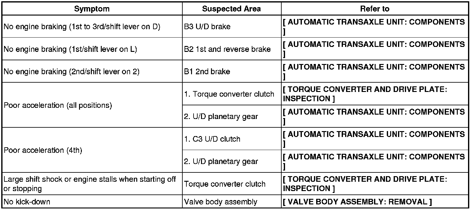 U241E AUTOMATIC TRANSAXLE: AUTOMATIC TRANSAXLE SYSTEM: PROBLEM SYMPTOMS TABLE