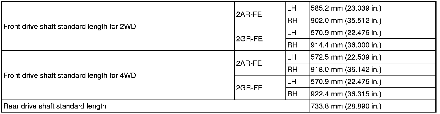SERVICE SPECIFICATIONS: DRIVE SHAFT: SERVICE DATA