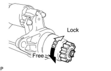 (1) Rotate the clutch pinion gear counterclockwise and check that it turns freely. Try to rotate the clutch pinion gear clockwise and check that it locks.