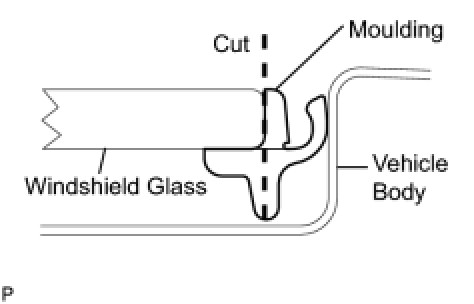 NOTE: Leave as much adhesive on the vehicle body as possible when cutting through the adhesive.