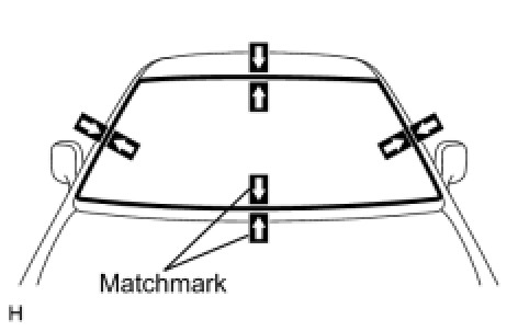 (e) Place matchmarks over the glass and vehicle body on the locations indicated in the illustration.