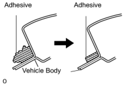 (1) On the contact surface of the vehicle body, use a knife to cut away excess adhesive as shown in the illustration.