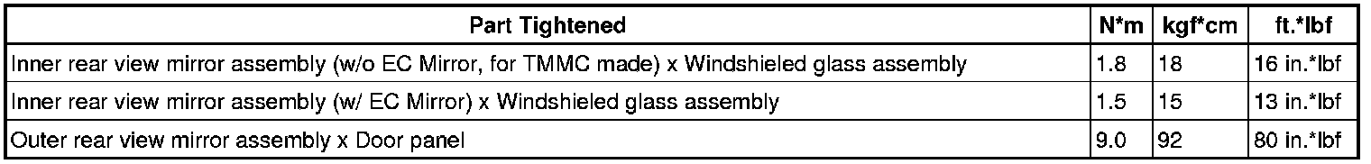 SERVICE SPECIFICATIONS: MIRROR: TORQUE SPECIFICATIONS