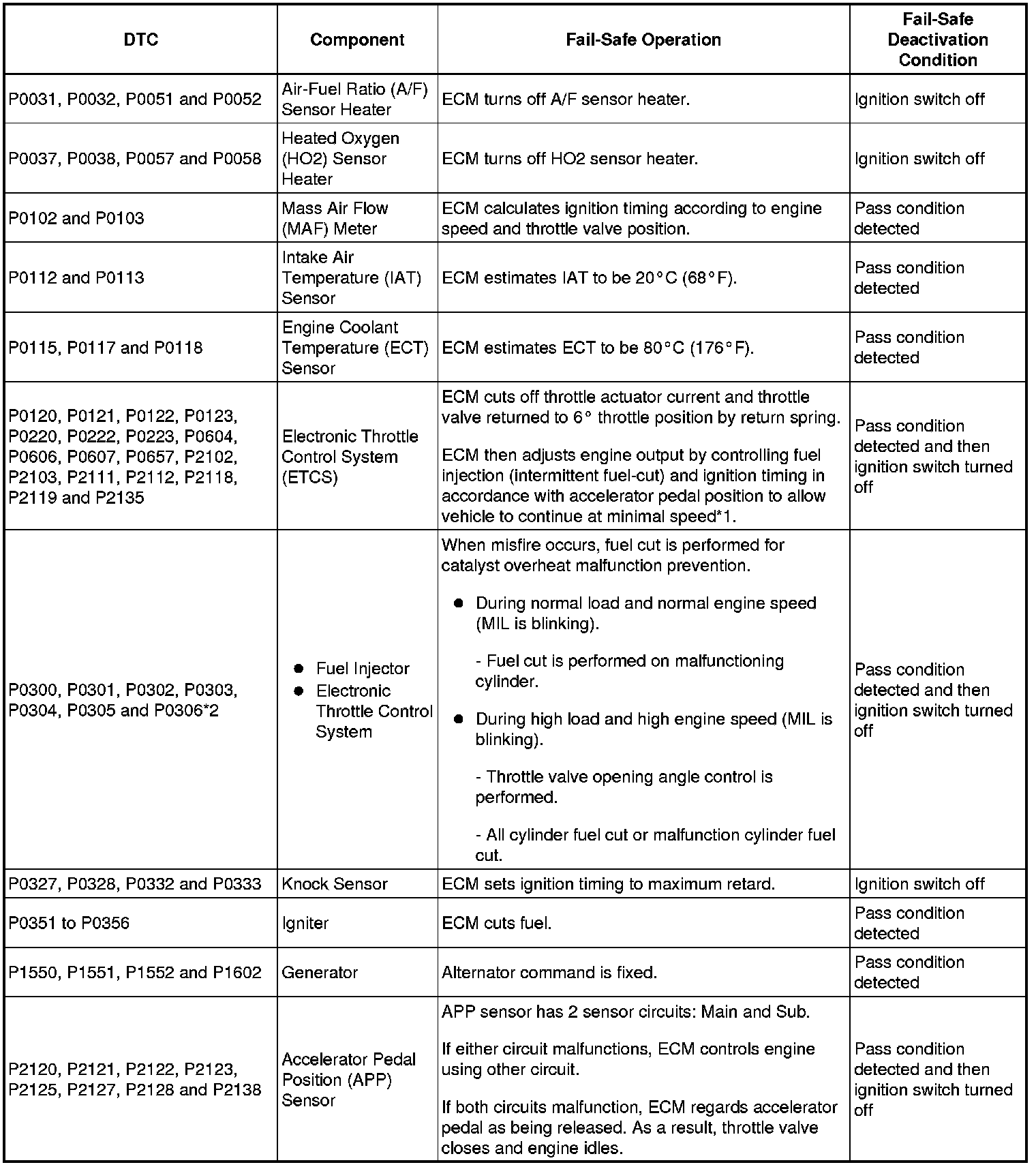 - *2: Misfire related fail-safe operations occur when catalyst overheat malfunctions occur.