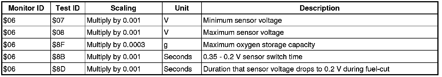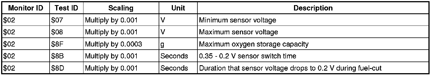 If you use a generic scan tool, multiply the test value by the scaling value listed below.
