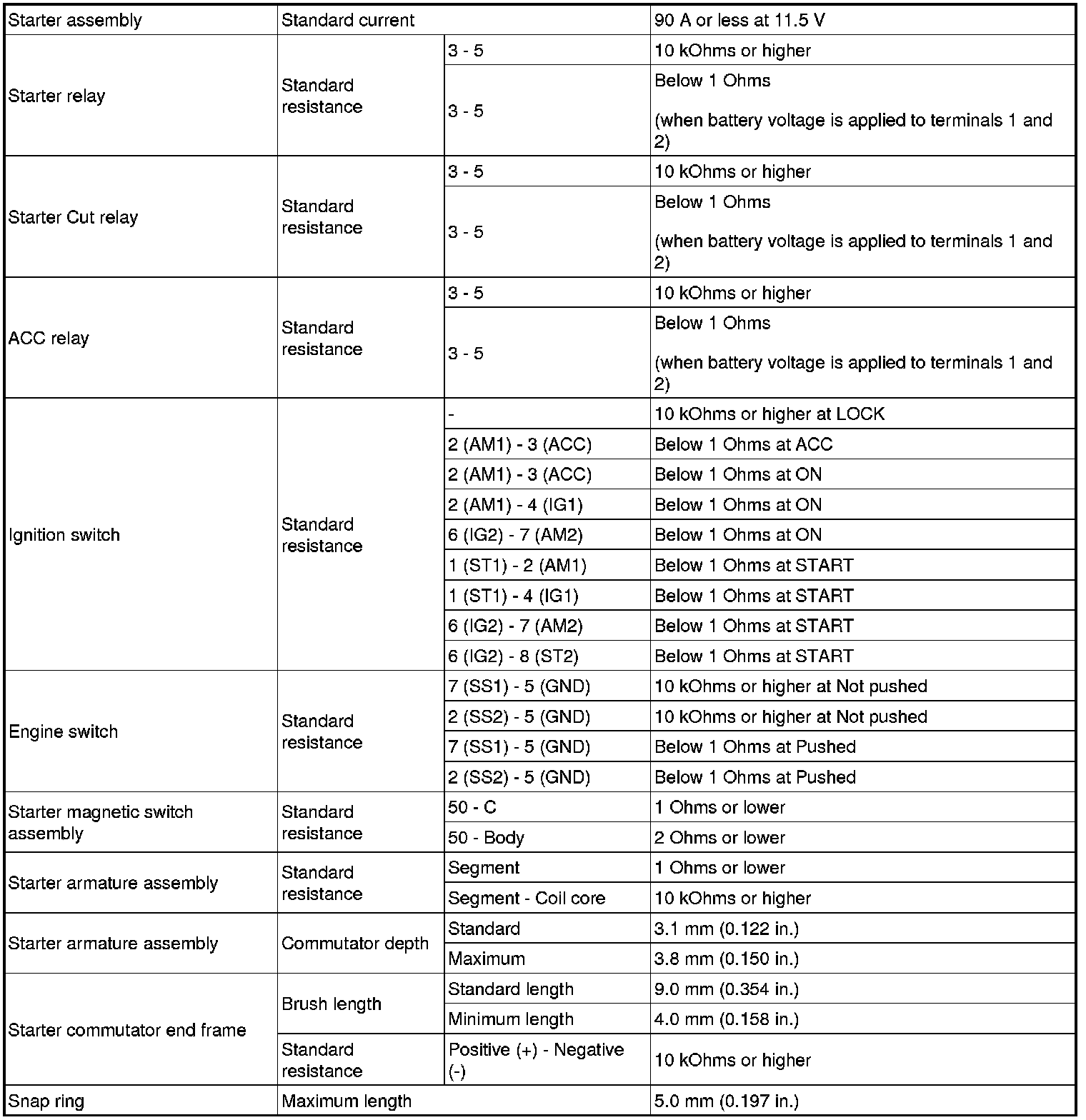 SERVICE SPECIFICATIONS: 2GR-FE STARTING: SERVICE DATA