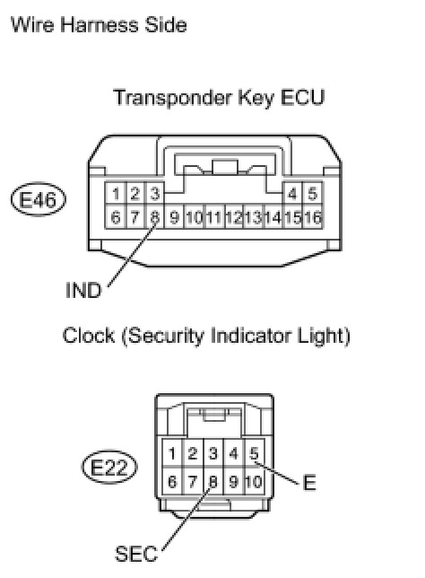 2. CHECK HARNESS AND CONNECTOR (TRANSPONDER KEY ECU - SECURITY INDICATOR LIGHT)