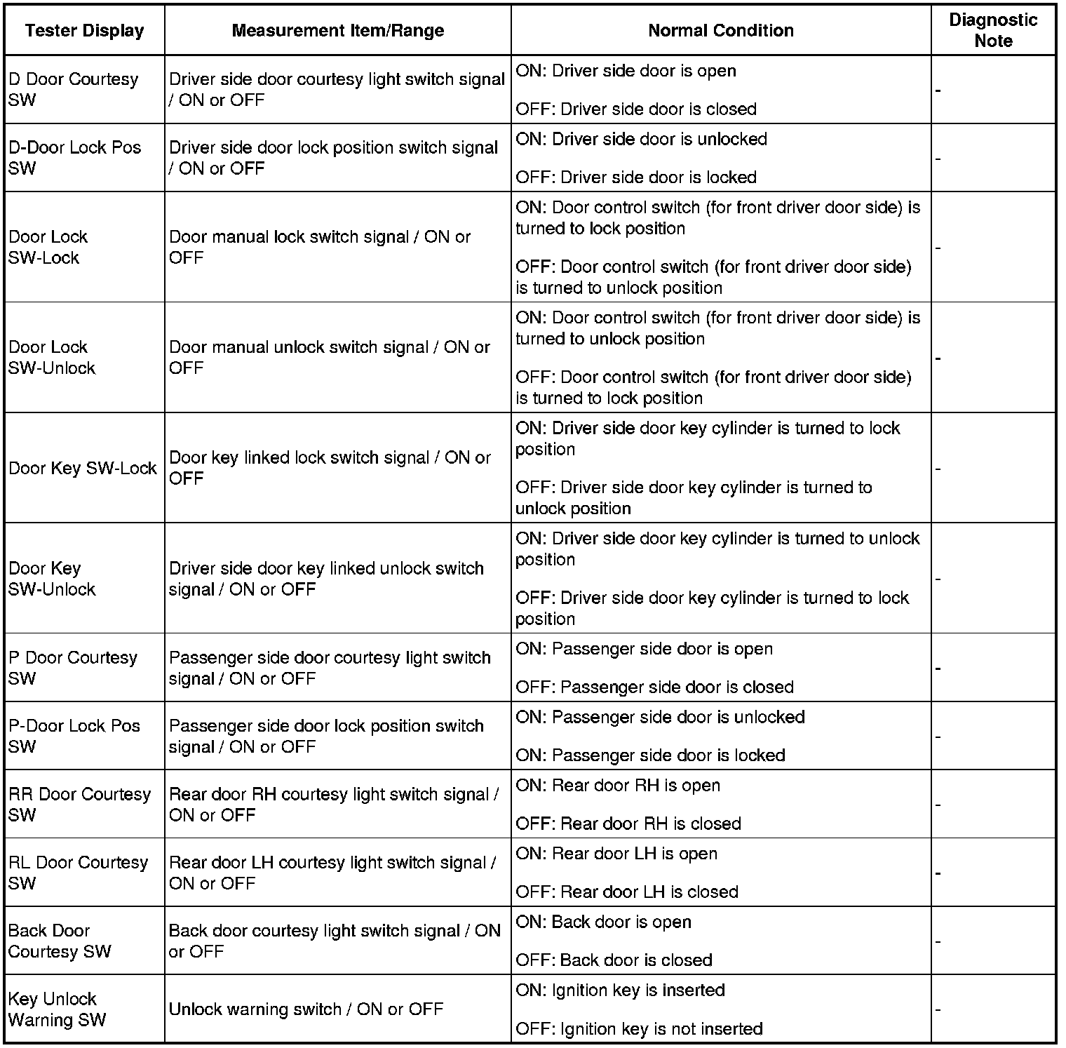 DOOR LOCK: WIRELESS DOOR LOCK CONTROL SYSTEM (w/o Smart Key System): DATA LIST / ACTIVE TEST