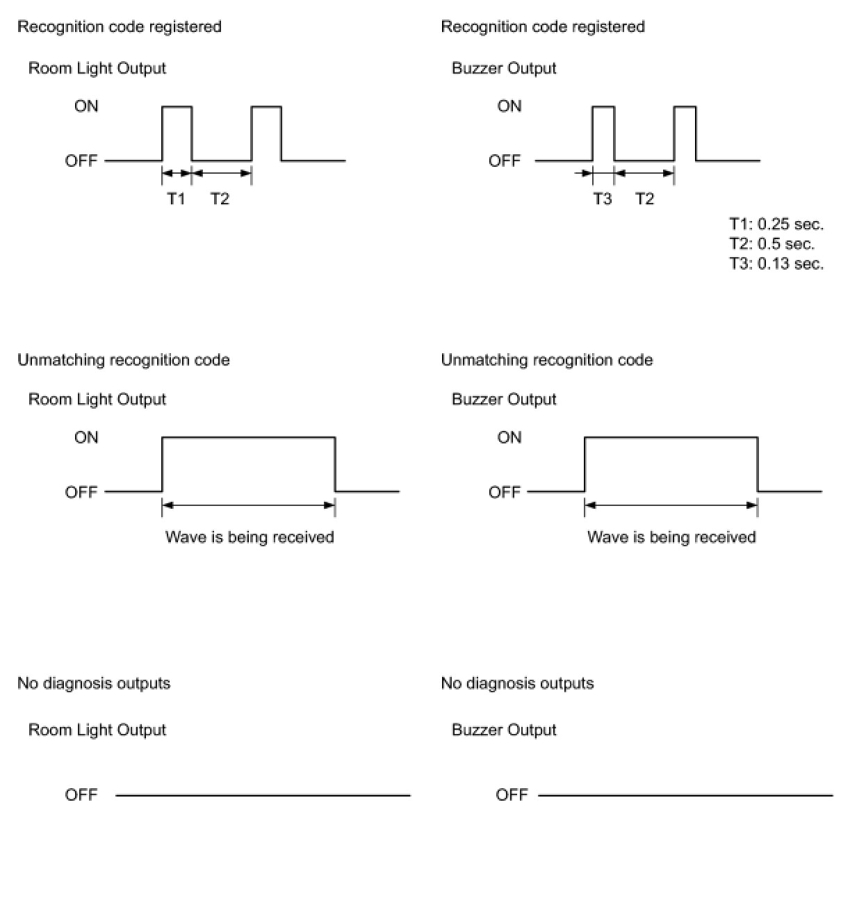 (a) Inspect the diagnosis outputs when the door control transmitter switch is held down. The diagnosis outputs can be checked by the flash patterns of the room light (wireless door lock buzzer).