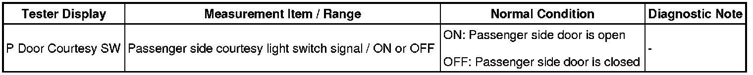 (a) Check the Data List for proper functioning of the door courtesy light switch (passenger side).