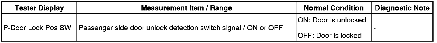 (a) Check the Data List for proper functioning of the door lock position switch (passenger side).