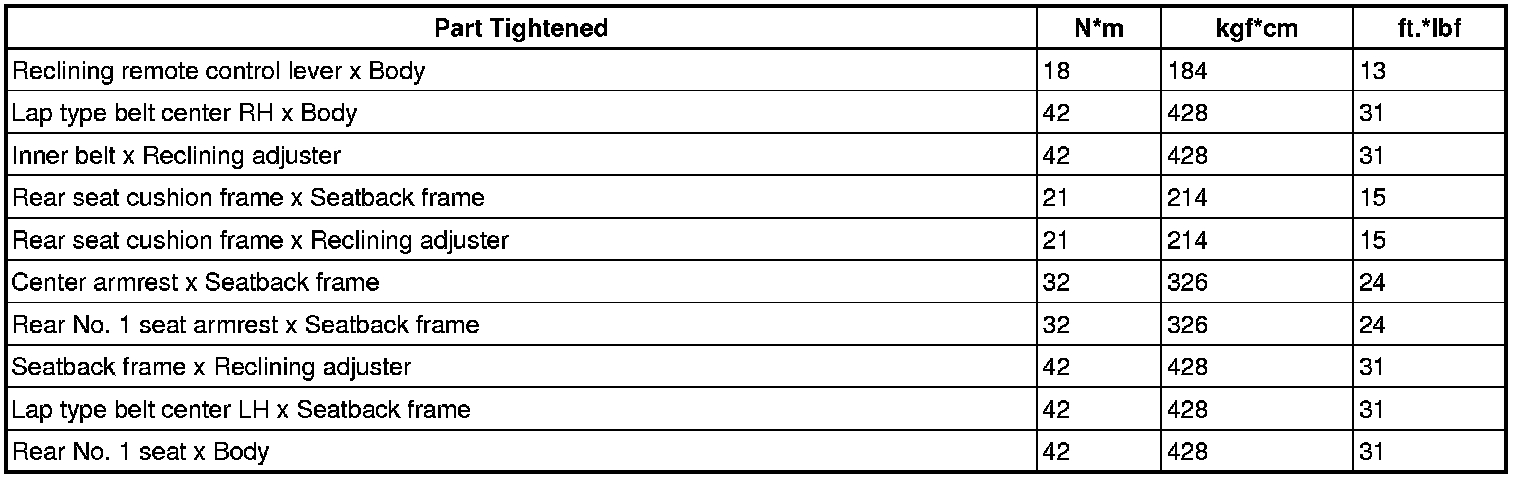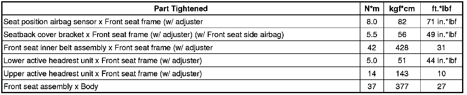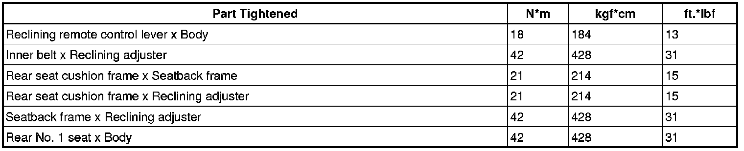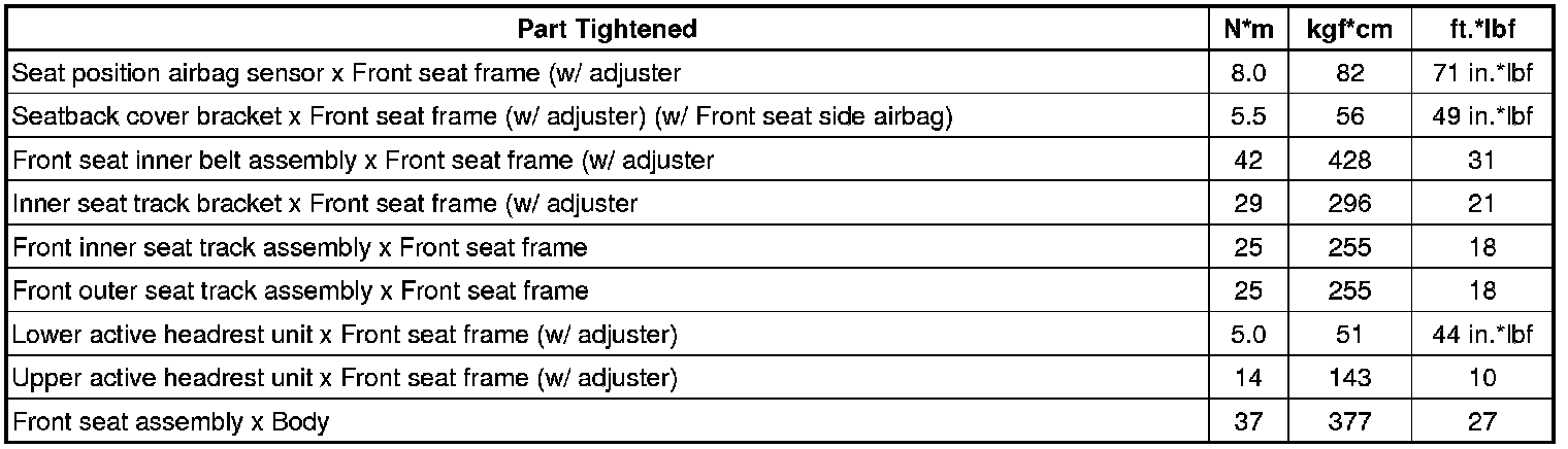 SERVICE SPECIFICATIONS: SEAT: TORQUE SPECIFICATIONS