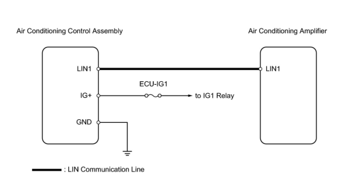 This circuit consists of the air conditioning control and the air conditioning amplifier. When the air conditioning control is operated, signals are transmitted to the air conditioning amplifier through the LIN communication system.