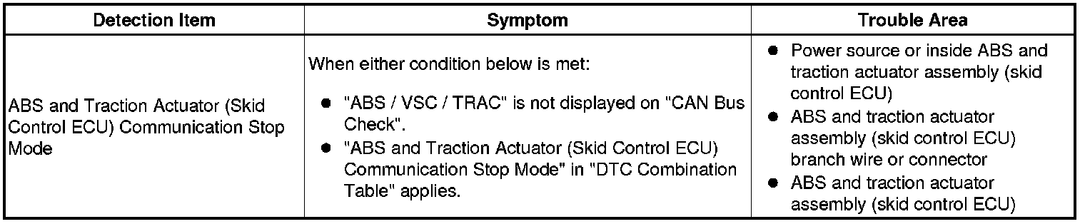 CAN COMMUNICATION: CAN COMMUNICATION SYSTEM: ABS and Traction Actuator (Skid Control ECU) Communication Stop Mode