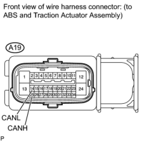(a) Disconnect the A19 ABS and traction actuator assembly (skid control ECU) connector.