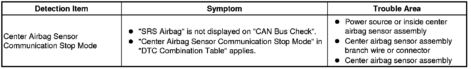 CAN COMMUNICATION: CAN COMMUNICATION SYSTEM: Center Airbag Sensor Communication Stop Mode