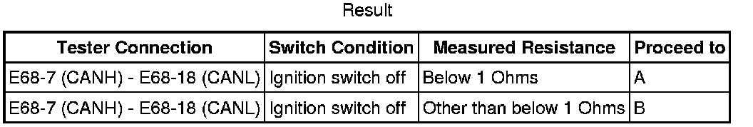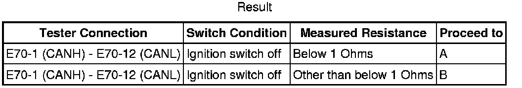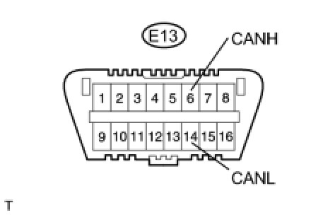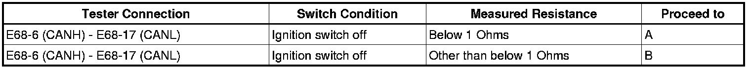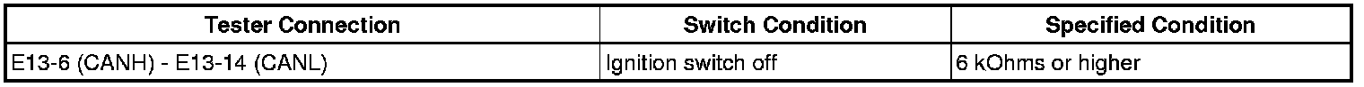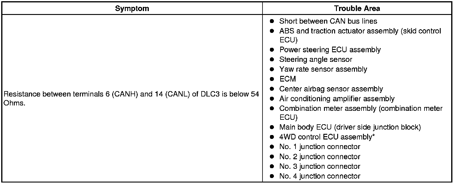 There may be a short circuit between the CAN bus lines when the resistance between terminals 6 (CANH) and 14 (CANL) of the DLC3 is below 54 Ohms.
