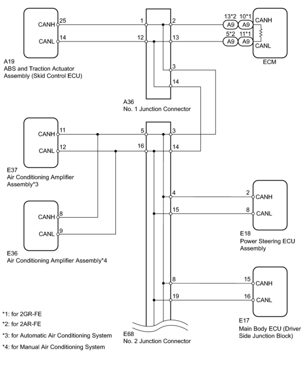 23. CHECK FOR SHORT TO B+ IN CAN BUS WIRE (NO. 2 JUNCTION CONNECTOR - AIR CONDITIONING AMPLIFIER)