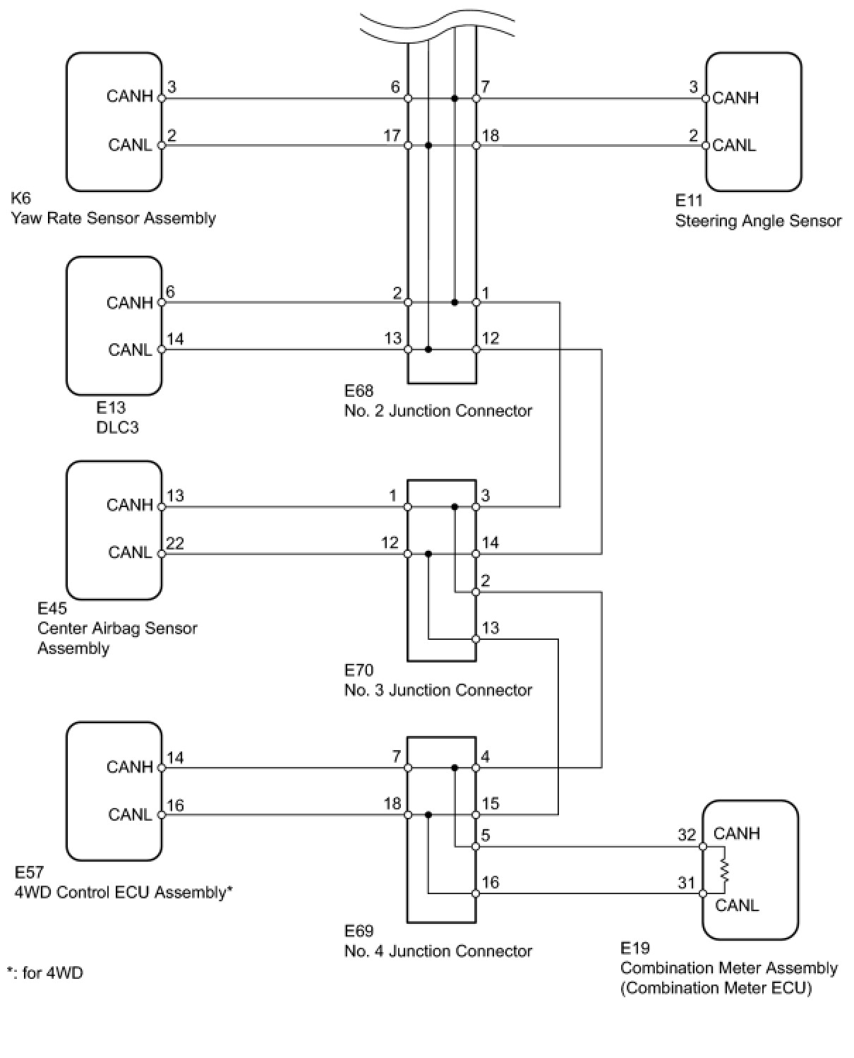 NOTE: For vehicles without 4WD, go to "Check for Short to B+ in CAN Bus Wire (No. 4 Junction Connector - Combination Meter)".