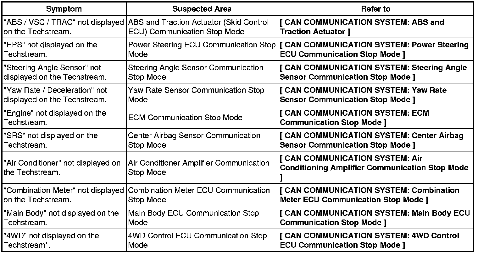 CAN COMMUNICATION: CAN COMMUNICATION SYSTEM: PROBLEM SYMPTOMS TABLE