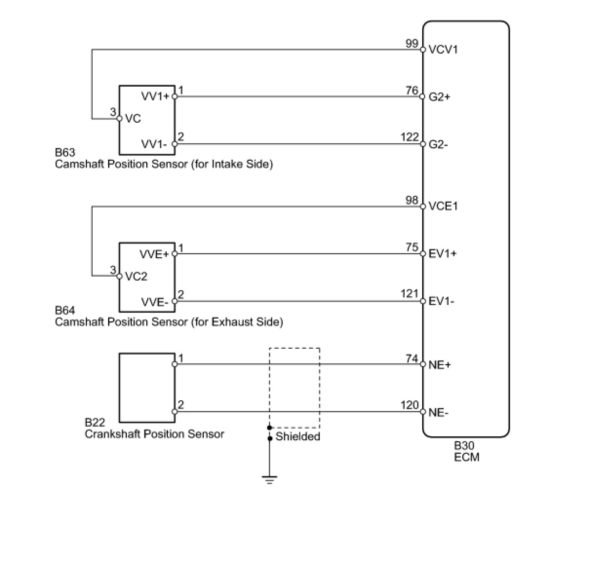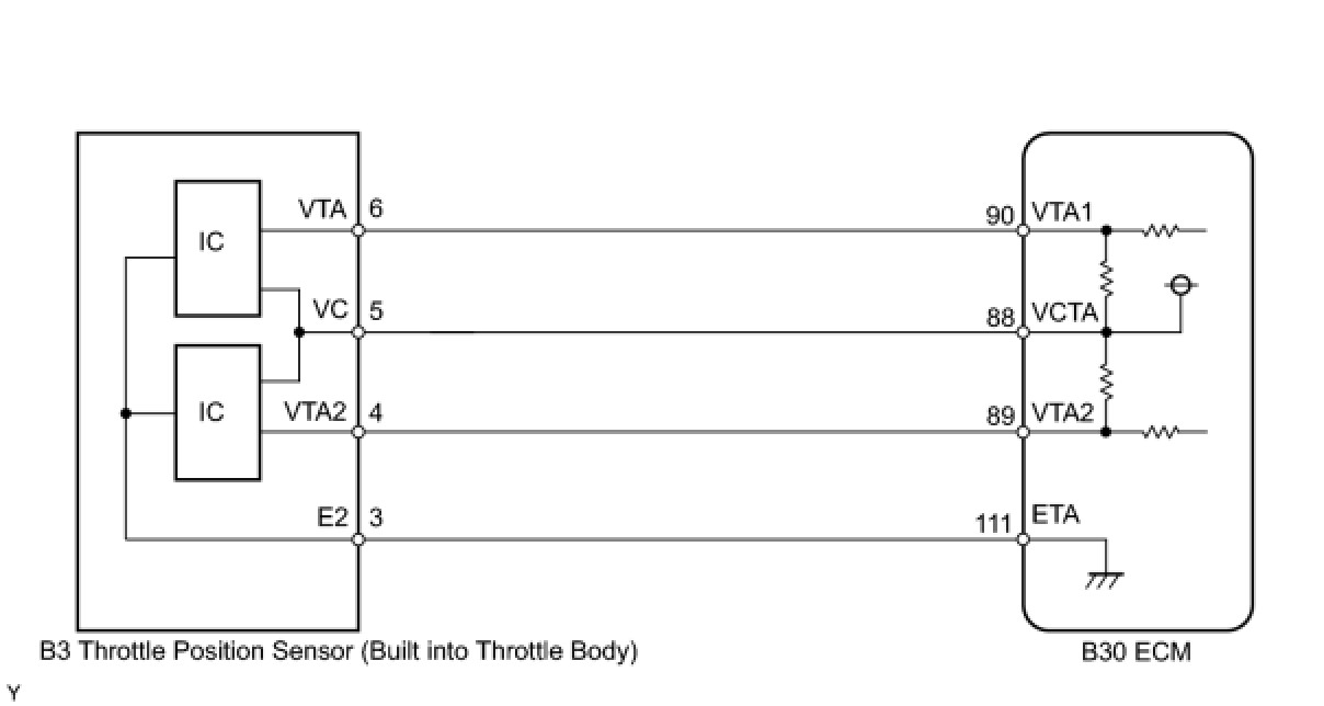 The ECM constantly generates 5 V of power from battery voltage supplied to the +B (BATT) terminal to operate the microprocessor. The ECM also provides this power to the sensors through the VC output circuit.