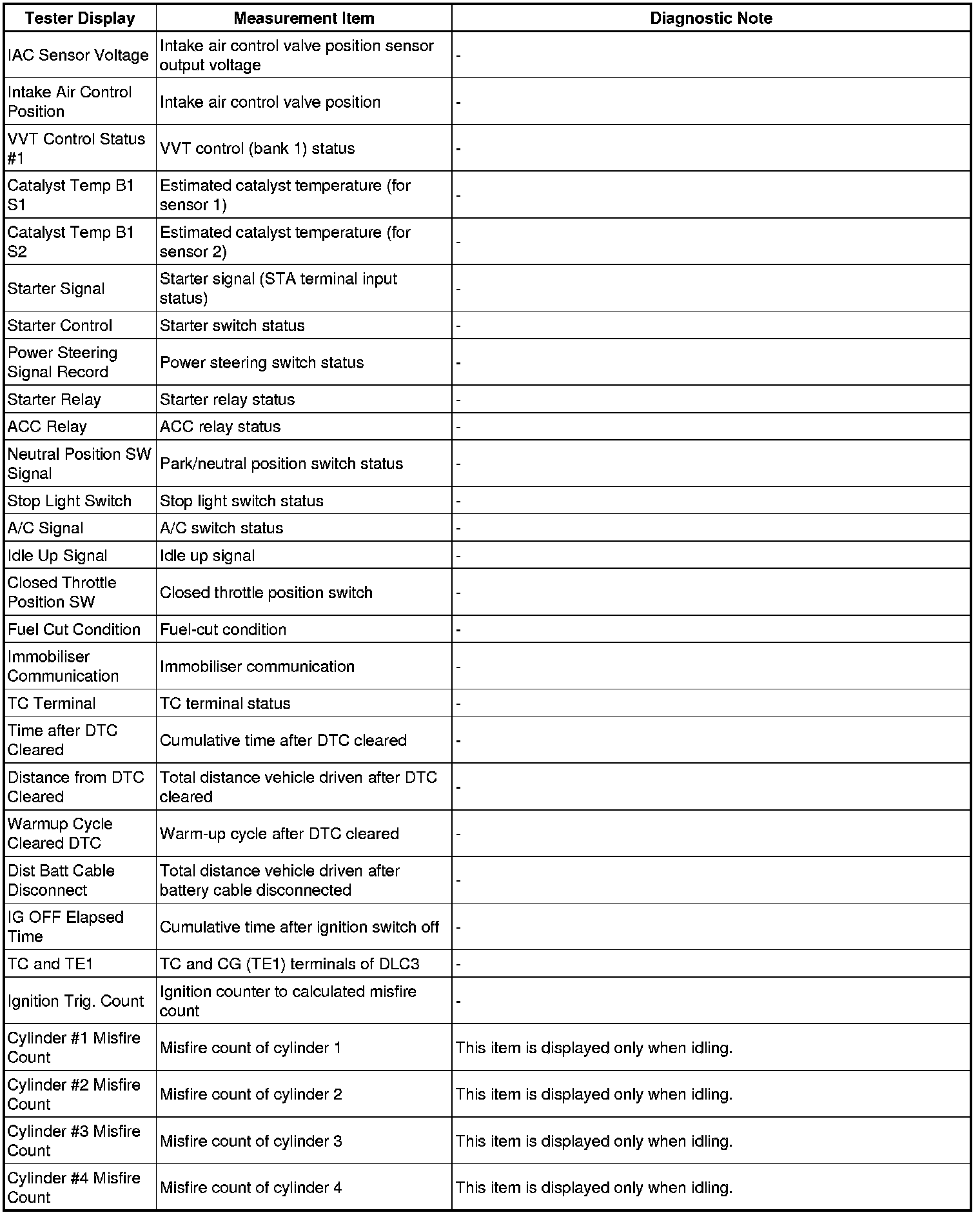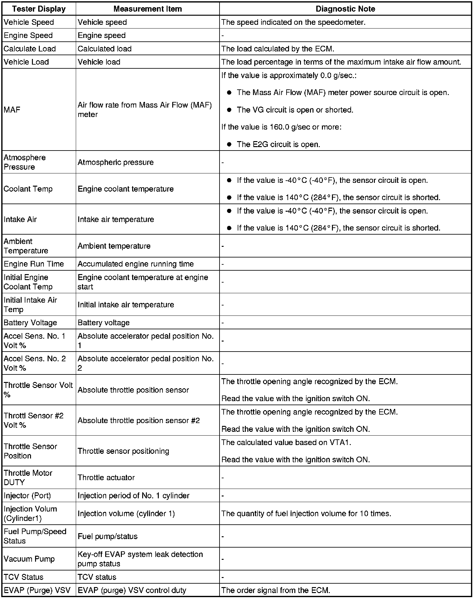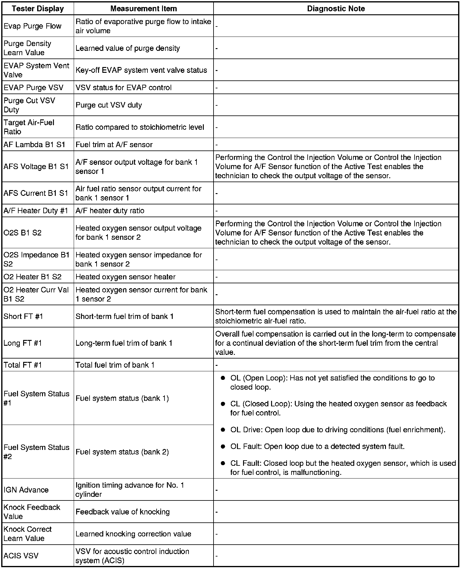 The ECM records vehicle and driving condition information as freeze frame data the moment a DTC is stored. When troubleshooting, freeze frame data can be helpful in determining whether the vehicle was moving or stationary, whether the engine was warmed up or not, whether the air-fuel ratio was lean or rich, as well as other data recorded at the time of a malfunction.