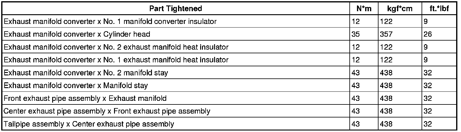 SERVICE SPECIFICATIONS: 2AR-FE EXHAUST: TORQUE SPECIFICATIONS