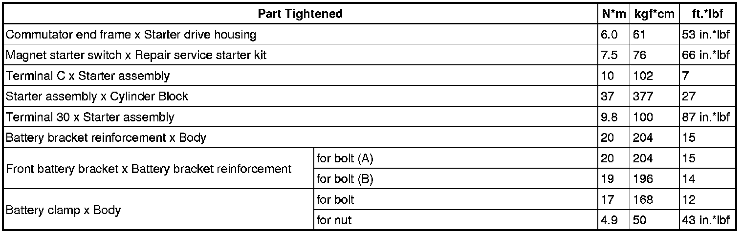 SERVICE SPECIFICATIONS: 2AR-FE STARTING: TORQUE SPECIFICATIONS