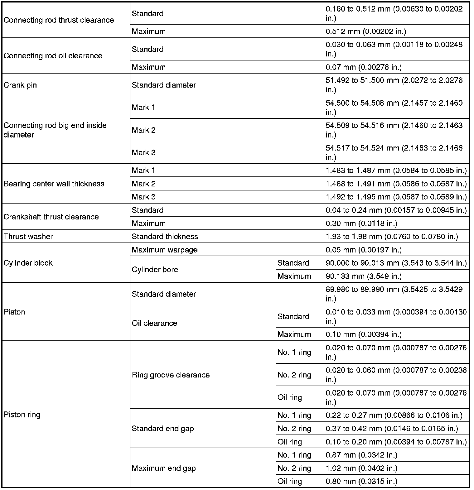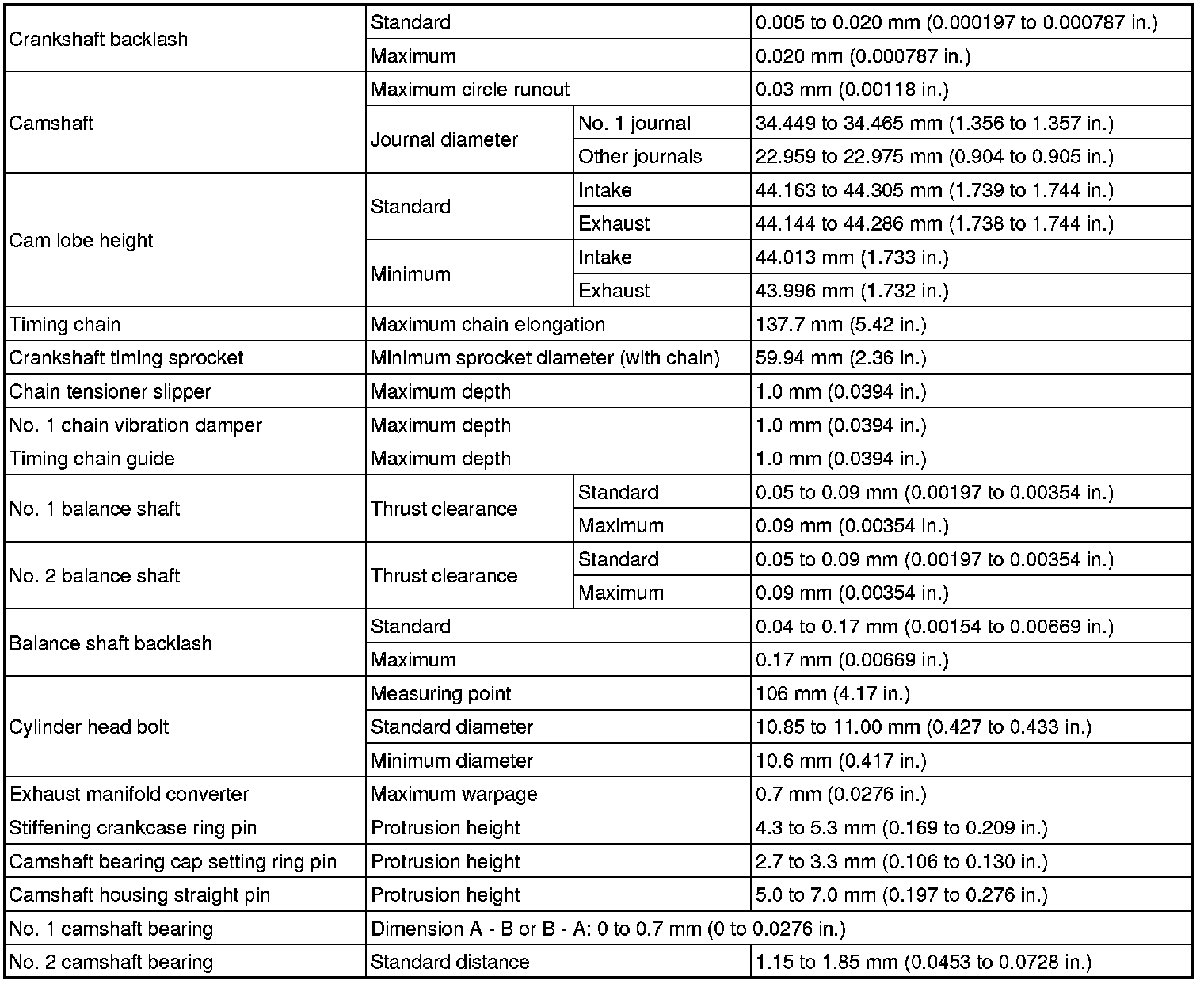 SERVICE SPECIFICATIONS: 2AR-FE ENGINE MECHANICAL: SERVICE DATA