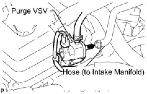 (a) Disconnect the hose (connected to the intake manifold) from the purge VSV.