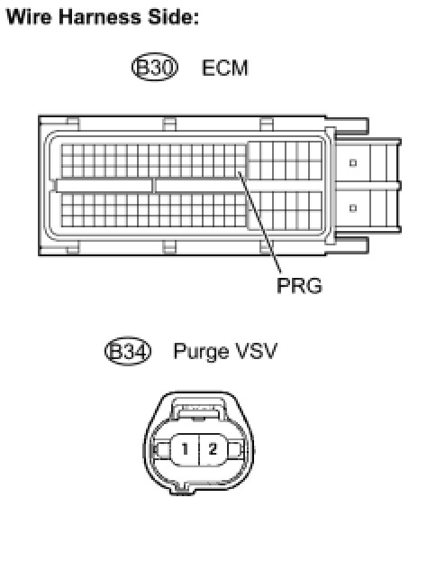 (a) Disconnect the B30 ECM connector and the B34 purge VSV connector.
