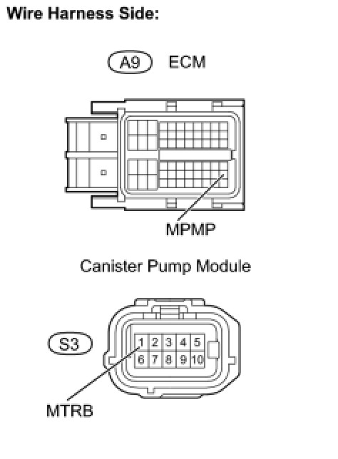 B -- CHECK WIRE HARNESS (ECM - CANISTER PUMP MODULE)