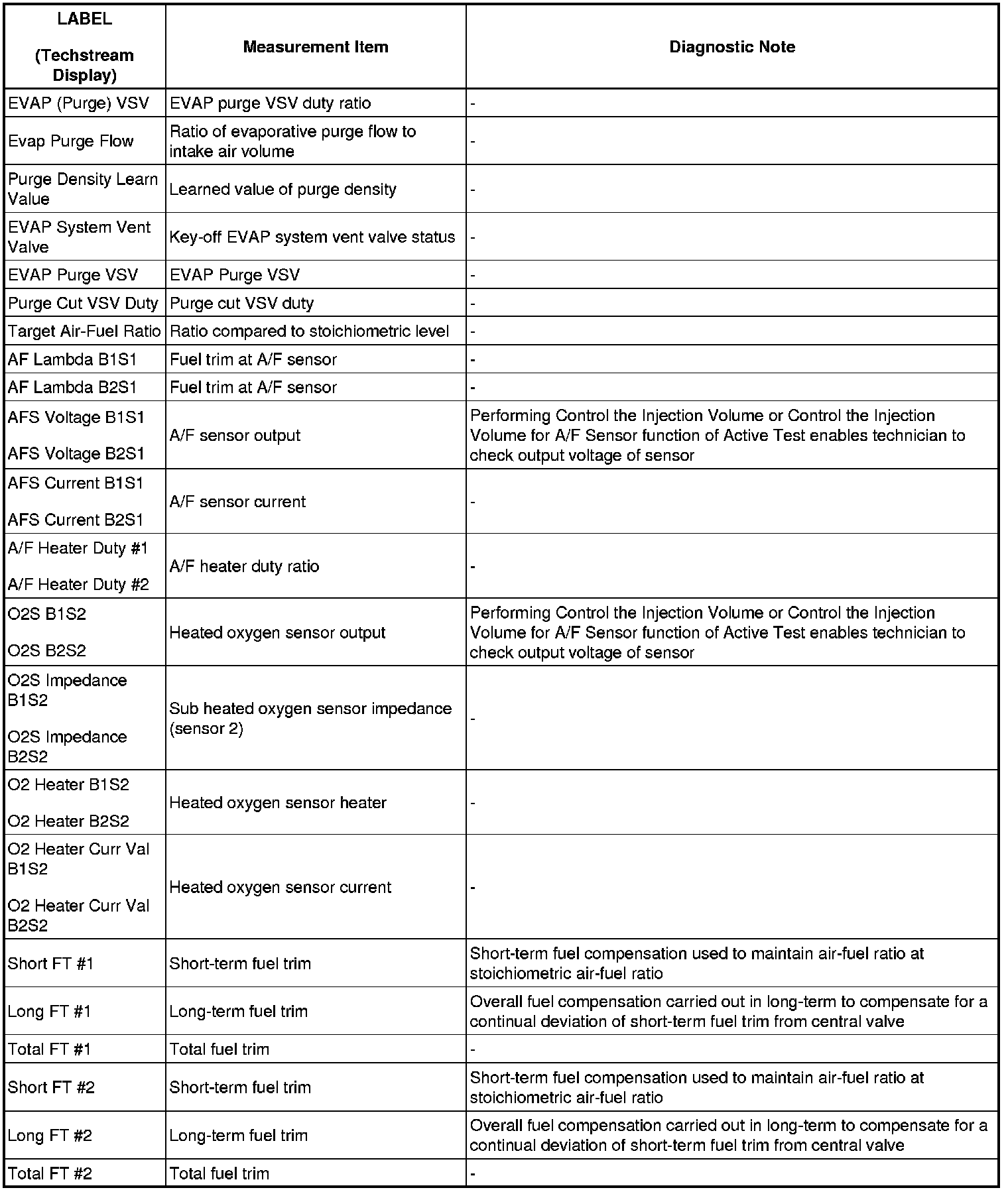 Freeze frame data records the engine conditions (fuel system, calculated load, engine coolant temperature, fuel trim, engine speed, vehicle speed, etc.) when a malfunction is detected. When troubleshooting, it can help determine if the vehicle was running or stopped, the engine was warmed up or not, the air-fuel ratio was lean or rich, and other data from the time the malfunction occurred.