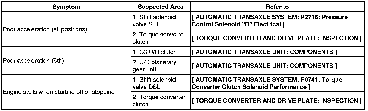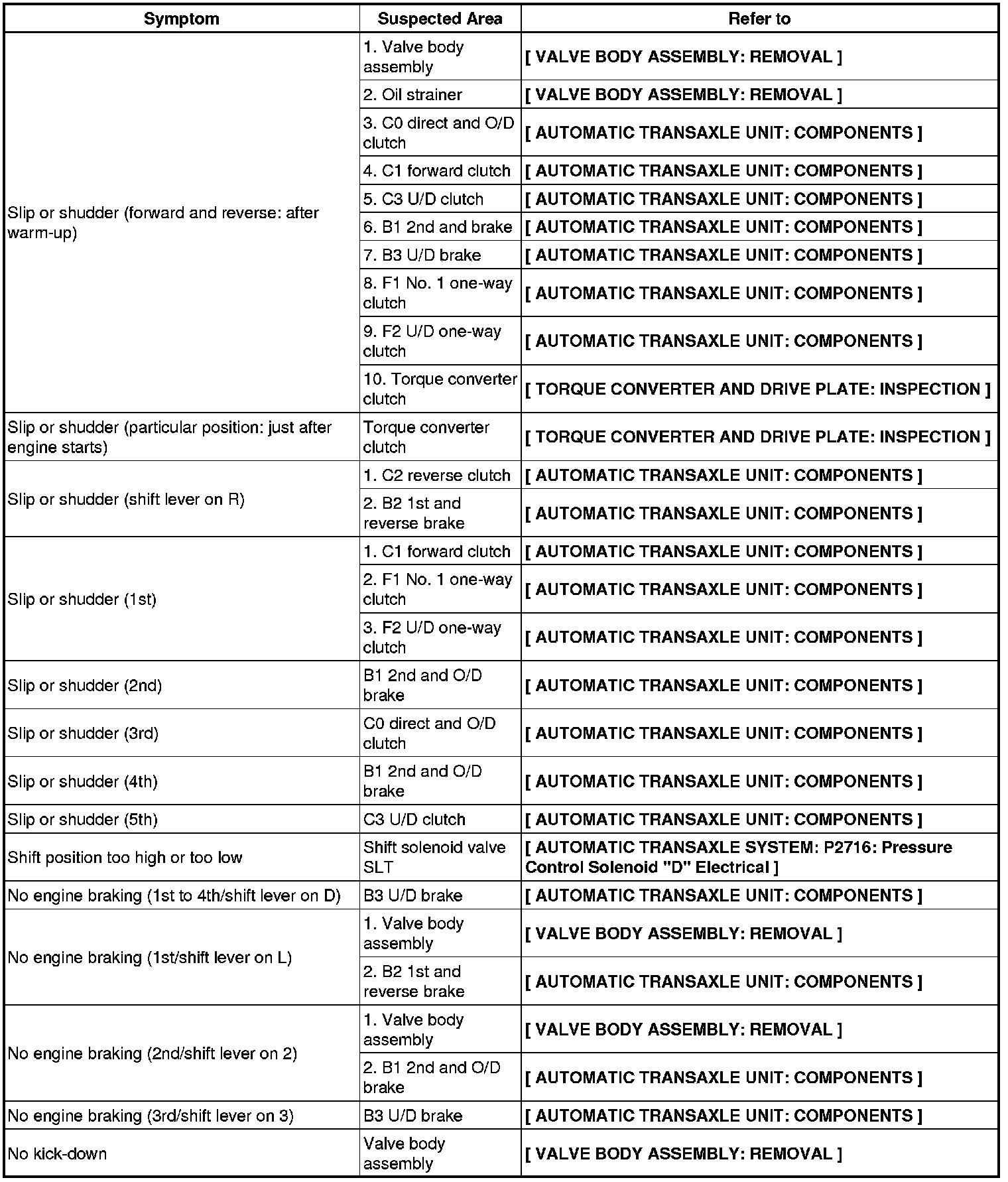 U151F AUTOMATIC TRANSAXLE: AUTOMATIC TRANSAXLE SYSTEM: PROBLEM SYMPTOMS TABLE