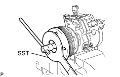 (b) Using SST, hold the magnet clutch hub.