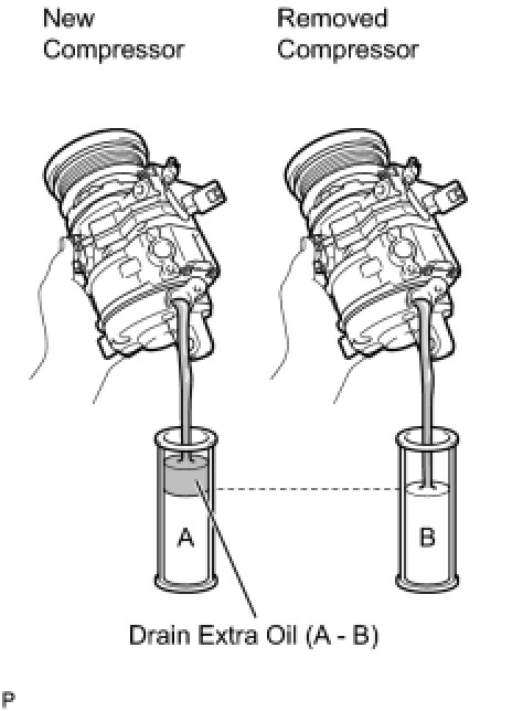 - If the amount of oil remaining in the removed compressor is too low, check for an oil leak.
