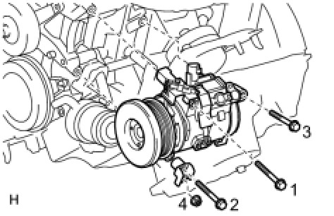 HINT: Tighten the bolts in the order shown in the illustration to install the cooler compressor.