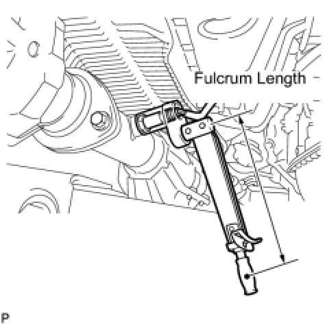 - Use a torque wrench with a fulcrum length of 30 cm (11.8 in.). If using a torque wrench with a length that is not 30 cm (11.8 in.), calculate the torque specification for the torque wrench and SST based on the "without SST" torque specification Service Precautions.