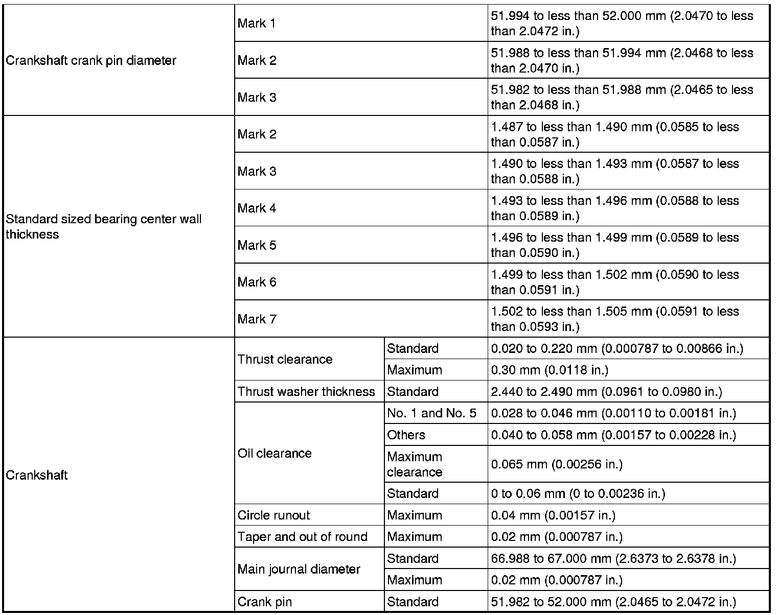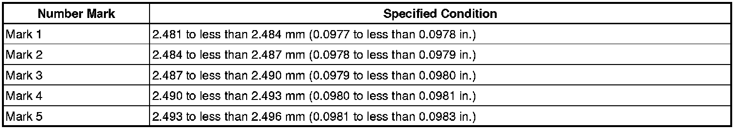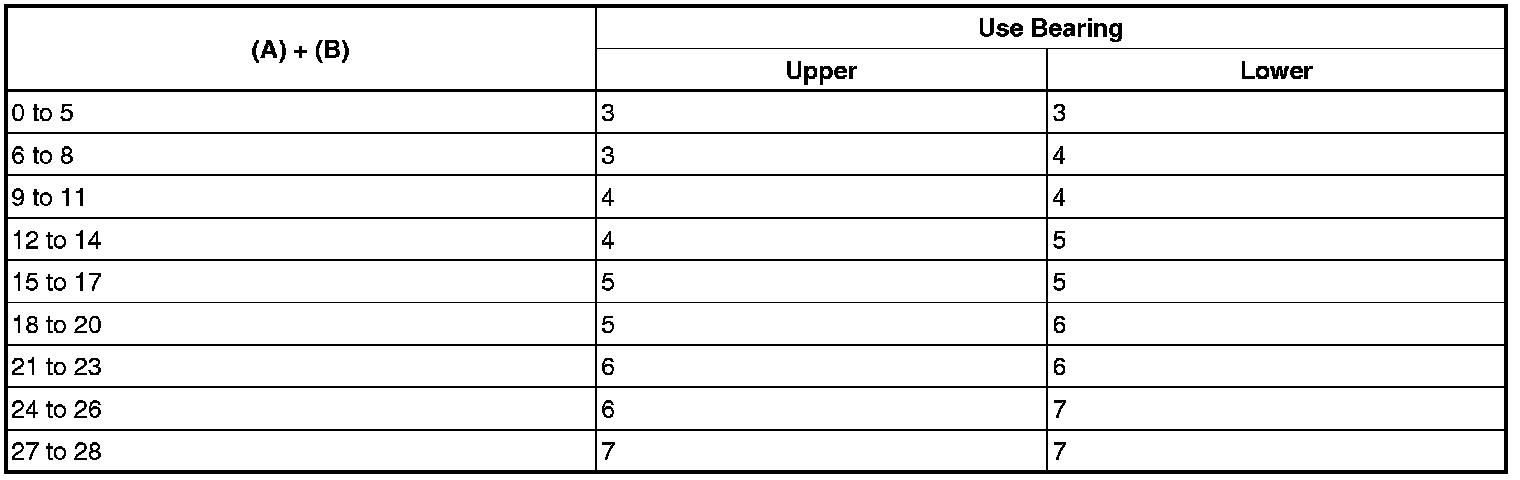 There are 5 sizes of standard bearings. For No. 1 and No. 5 position bearings, use bearings marked 3, 4, 5, 6 and 7. For other position bearings, use bearings marked 1, 2, 3, 4 and 5.