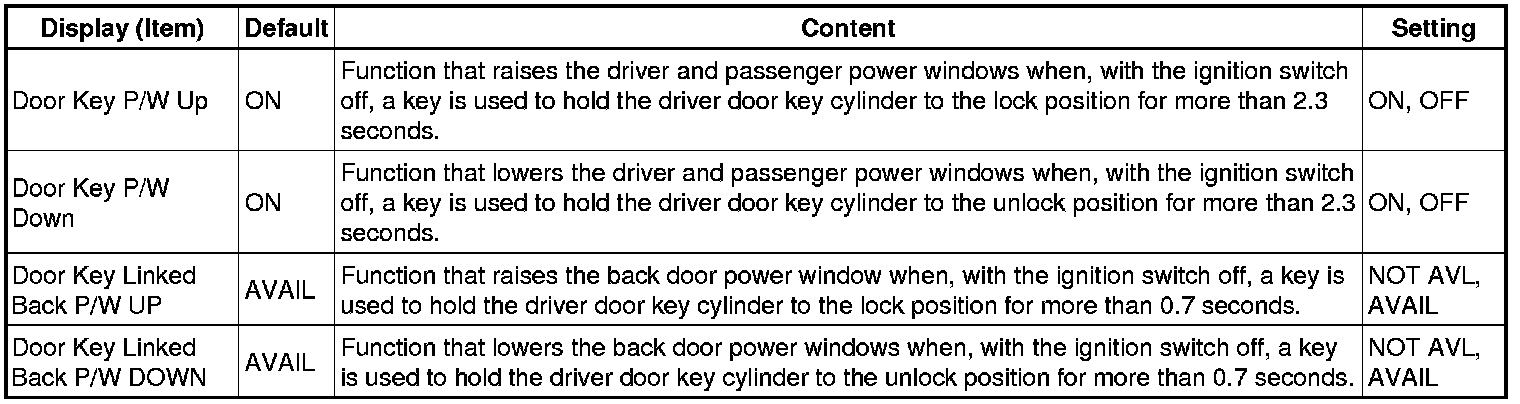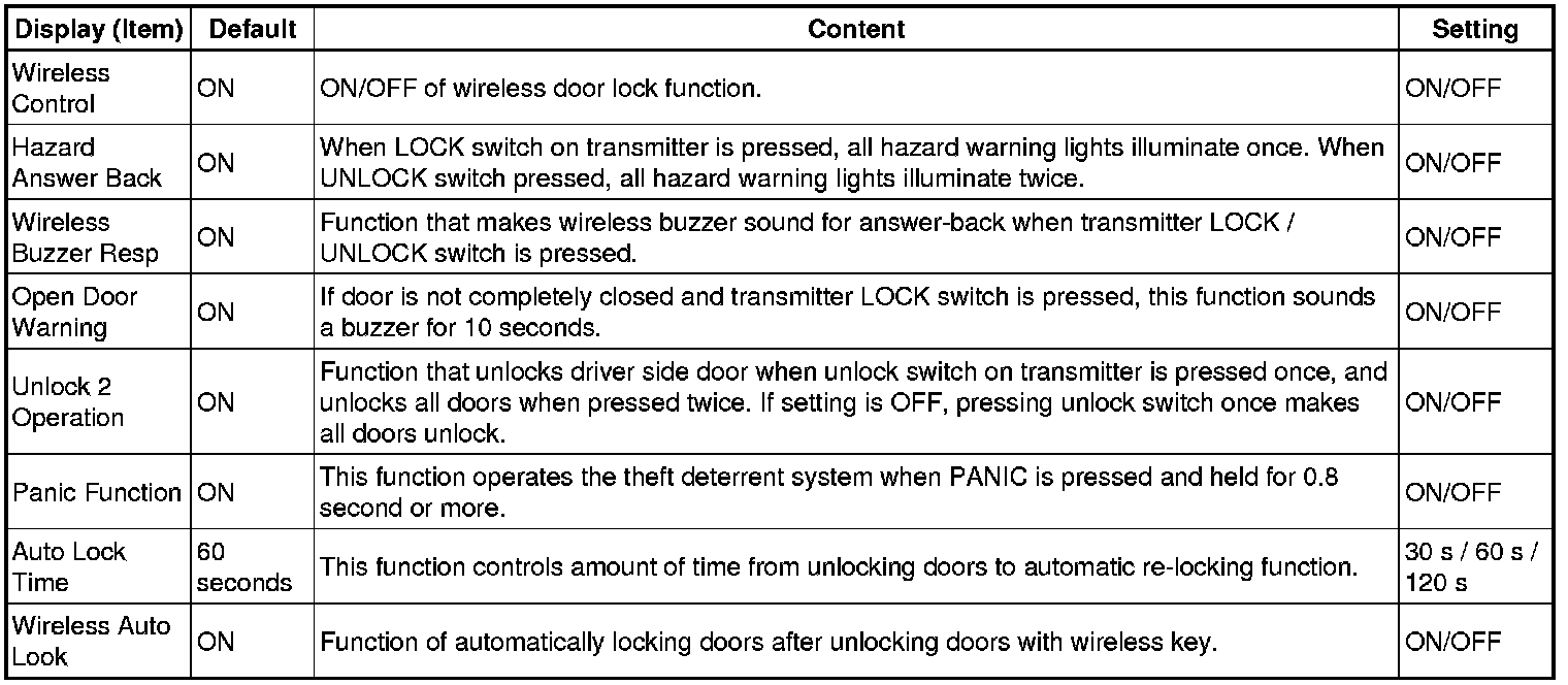 - Power door lock control system (automatic door lock function, automatic door unlock function)