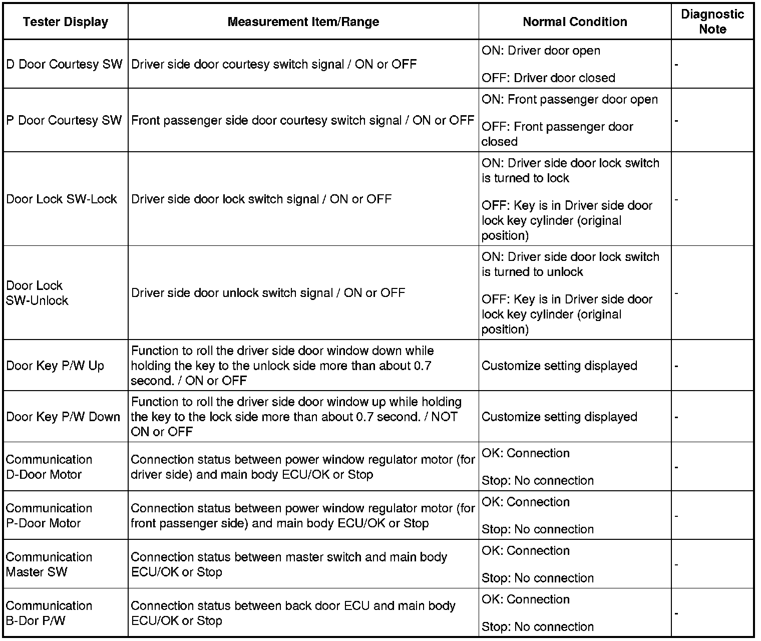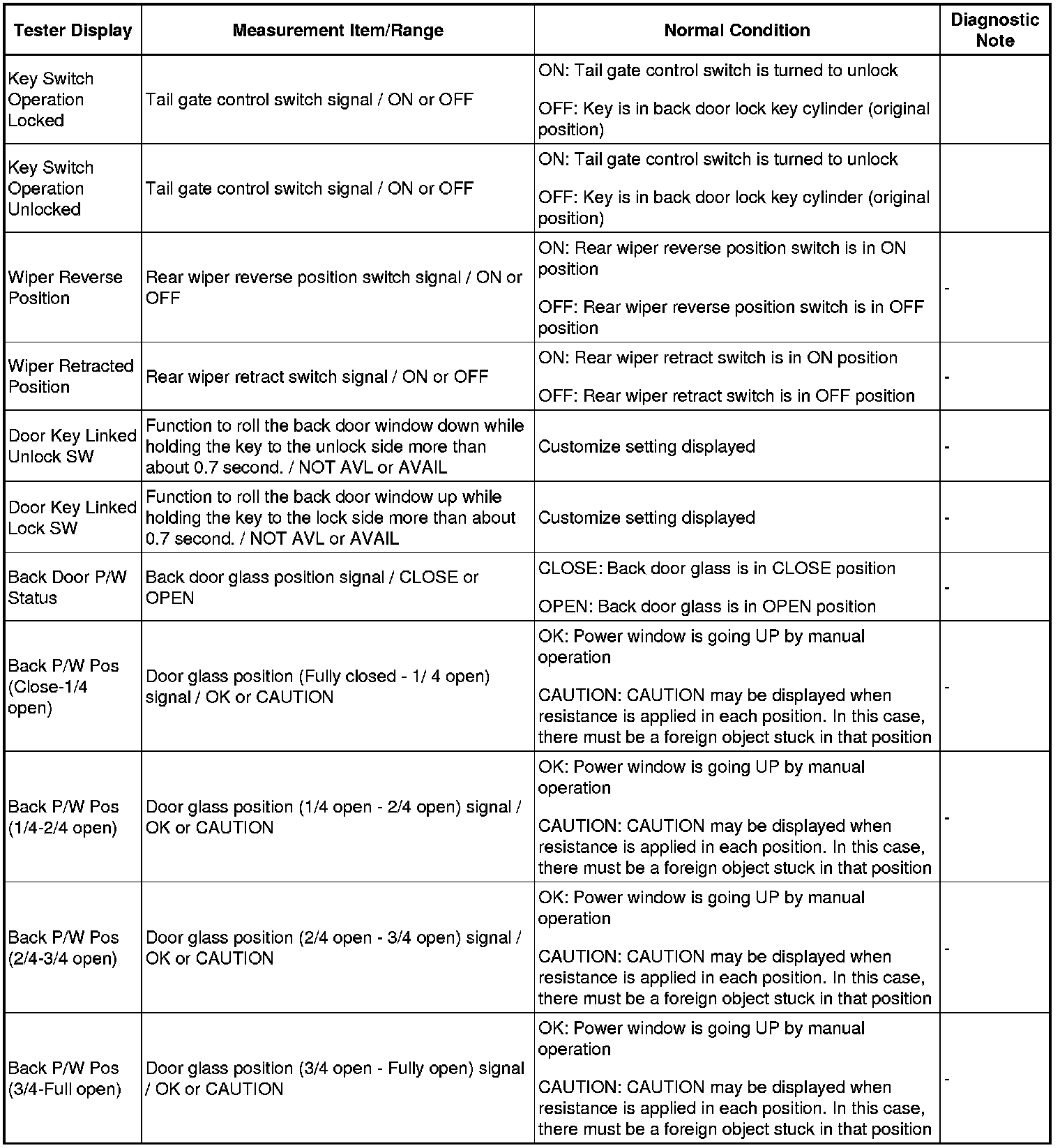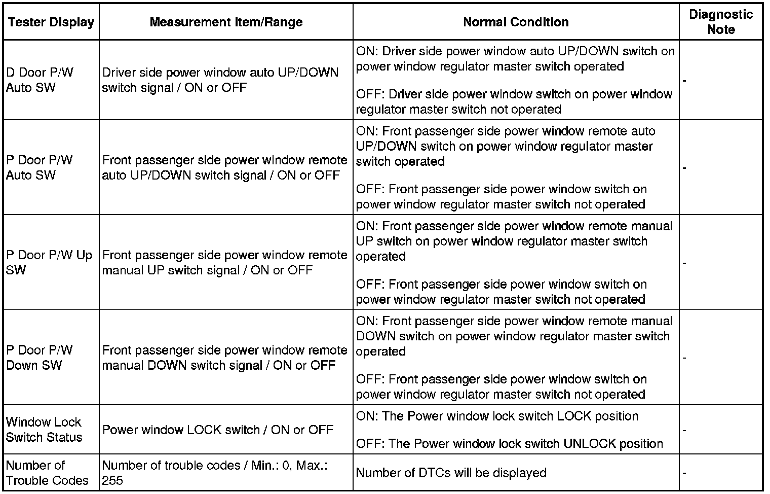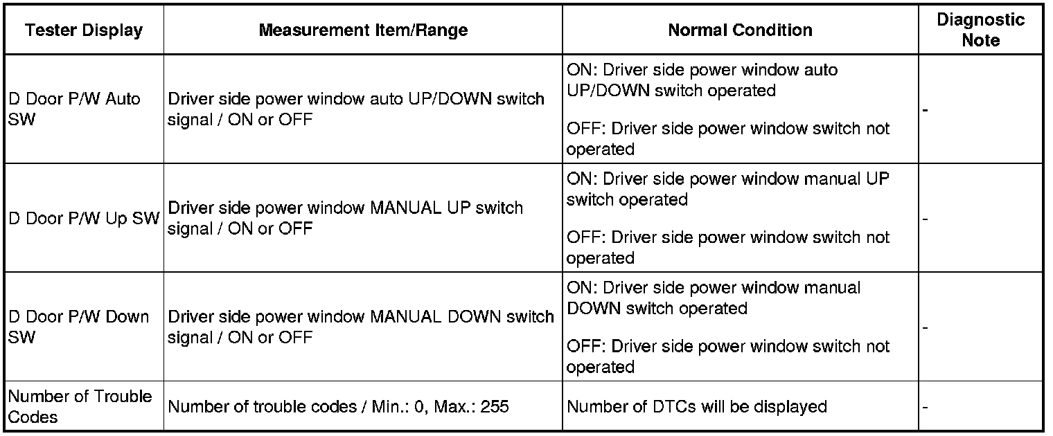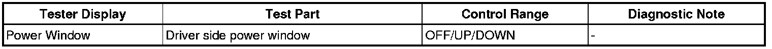 WINDOW / GLASS: POWER WINDOW CONTROL SYSTEM: DATA LIST / ACTIVE TEST